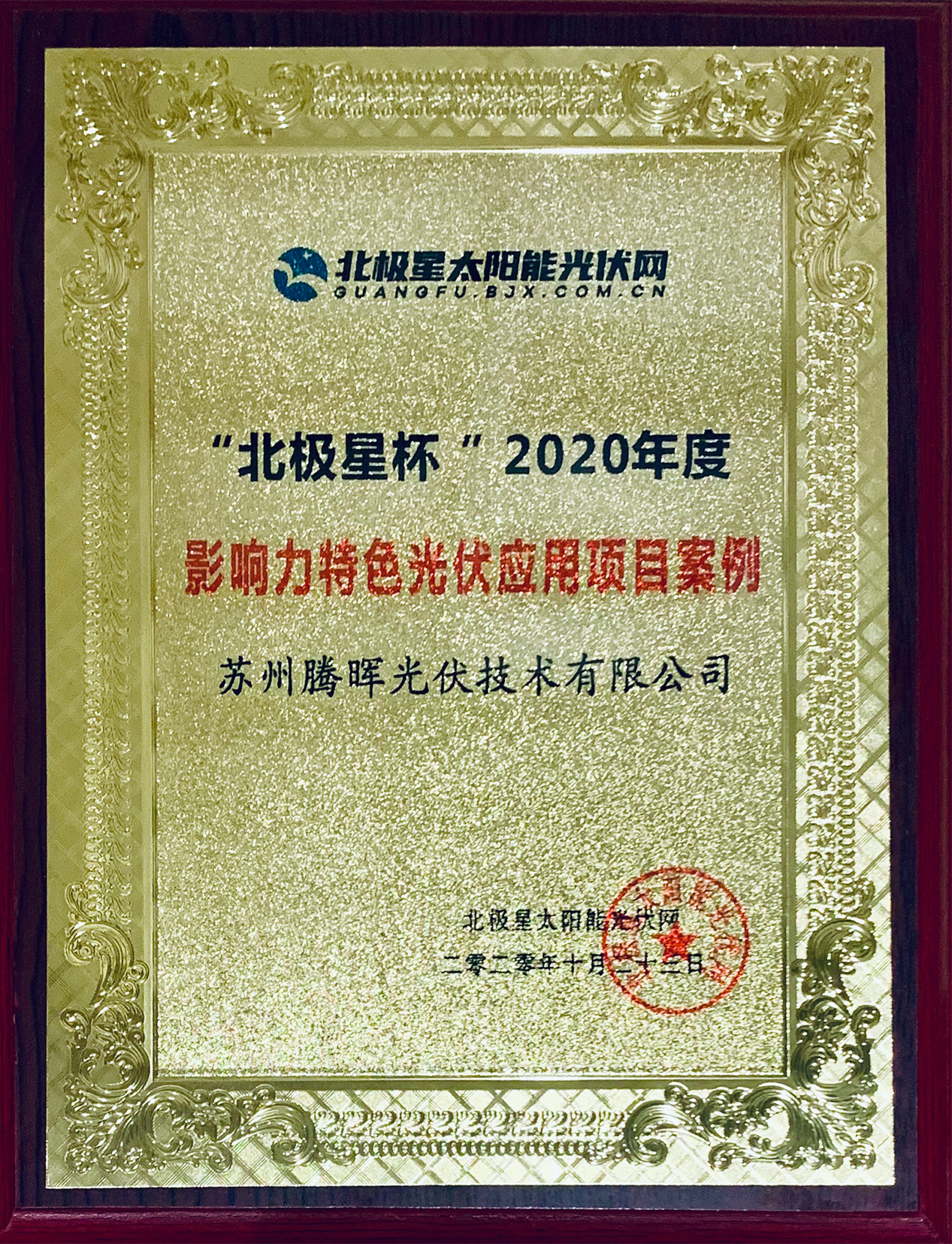 2020年10月23日,“北極星杯”2020光伏影響力品牌評(píng)選頒獎(jiǎng)典禮在北京舉辦,經(jīng)過激烈角逐,騰暉光伏從260多家入圍企業(yè)中脫穎而出,榮膺2020影響力光伏電池/組件品牌,此外,阿根廷高查瑞315 MW光伏電站項(xiàng)目榮獲“影響力特色光伏應(yīng)用項(xiàng)目案例獎(jiǎng)”。