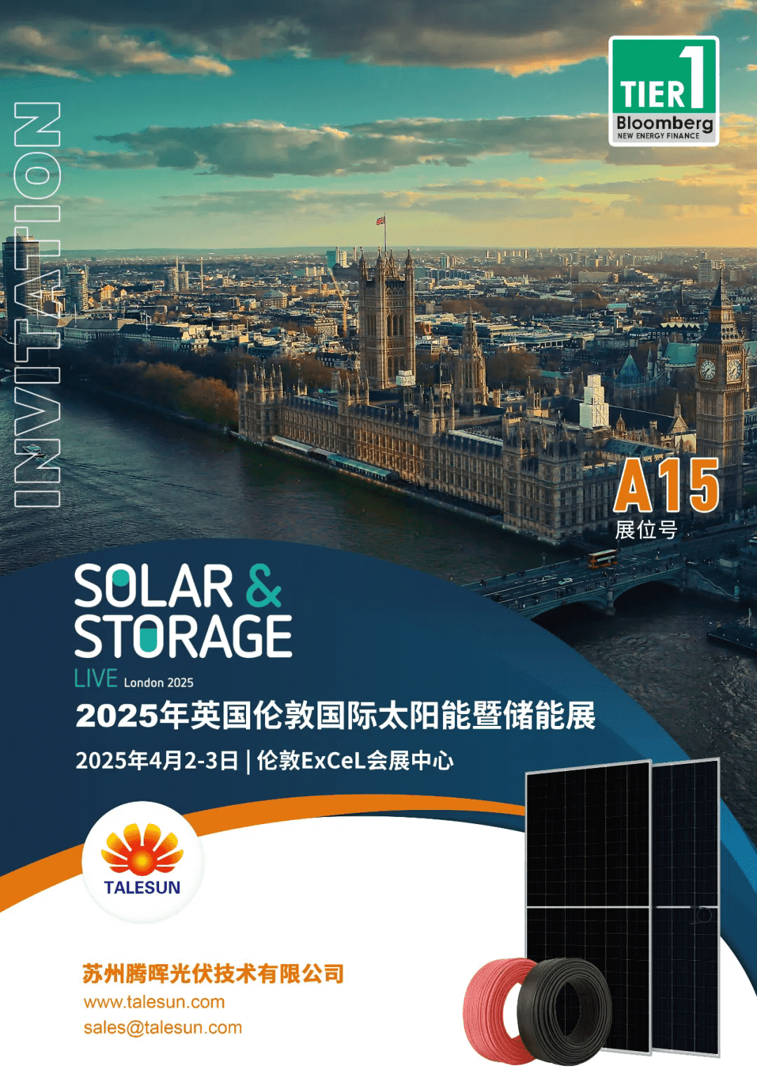 騰暉光伏將于2025年4月2日-4日亮相英國倫敦國際太陽能暨儲能展(Solar & Storage Live London 2025),展位號A15。屆時(shí)將展出新一代高效光伏組件,包括TOPCon 600w與HJT 735w等創(chuàng)新產(chǎn)品,展現(xiàn)高功率、低衰減及多場景適配技術(shù)優(yōu)勢。騰暉光伏誠邀全球客戶與行業(yè)伙伴蒞臨交流,共探光伏技術(shù)前沿趨勢。