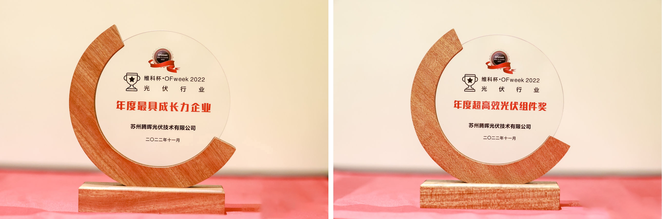 近日,OFweek 2022(第十三屆)太陽(yáng)能光伏產(chǎn)業(yè)大會(huì)暨光伏行業(yè)年度頒獎(jiǎng)典在深圳隆重舉行,騰暉光伏應(yīng)邀出席,并成功斬獲“2022年度超高效光伏組件獎(jiǎng)”、“2022年度最具成長(zhǎng)力企業(yè)”兩項(xiàng)大獎(jiǎng)。