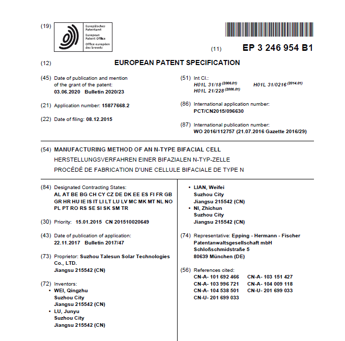 近日,騰暉光伏海外專利布局工作又取得了重要進(jìn)展,四項(xiàng)光伏產(chǎn)品及系統(tǒng)相關(guān)的PCT專利已完成進(jìn)入國(guó)家階段,其中一項(xiàng)發(fā)明專利進(jìn)入歐盟,三項(xiàng)發(fā)明專利進(jìn)入非洲。這為騰暉光伏核心產(chǎn)品及服務(wù)能夠進(jìn)入歐盟和非洲等地區(qū)的光伏市場(chǎng)提供了必要的技術(shù)保障。騰暉光伏將積極響應(yīng)國(guó)家“一帶一路”發(fā)展號(hào)召,依托自身在品牌、技術(shù)等方面的既有優(yōu)勢(shì),積極開(kāi)展政府間國(guó)際科技合作攻關(guān)以及新產(chǎn)品國(guó)際市場(chǎng)開(kāi)發(fā),促進(jìn)一帶一路沿線國(guó)家在新能源等領(lǐng)域的深入合作力度,提高各國(guó)之間在資源和市場(chǎng)的互聯(lián)互通、共享程度,通過(guò)綠色能源為一帶一路沿線國(guó)家的能源結(jié)構(gòu)改革、經(jīng)濟(jì)發(fā)展和生態(tài)環(huán)境改善做出貢獻(xiàn)。截至目前騰暉累計(jì)申請(qǐng)核心專利400多件,授權(quán)200多件,并建立了良好知識(shí)產(chǎn)權(quán)管理體系,為公司的全球化競(jìng)爭(zhēng)提供了良好的知識(shí)產(chǎn)權(quán)保障。