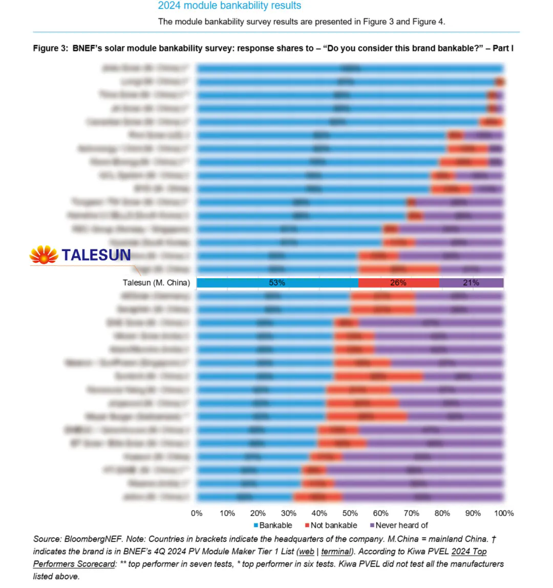 近日,全球知名研究機(jī)構(gòu)彭博新能源財(cái)經(jīng)(BNEF)公布了《2024年光伏組件和逆變器可融資性調(diào)查報(bào)告》(PV Module and Inverter Bankability 2024)?,騰暉光伏憑借穩(wěn)健的財(cái)務(wù)表現(xiàn)與良好的企業(yè)商譽(yù)排名前列。這一權(quán)威認(rèn)證不僅是對騰暉光伏產(chǎn)品可靠性與品牌價(jià)值的充分肯定,更標(biāo)志著我們的組件已成為全球金融機(jī)構(gòu)與投資者眼中“低風(fēng)險(xiǎn)、高價(jià)值”的綠色資產(chǎn)標(biāo)桿。