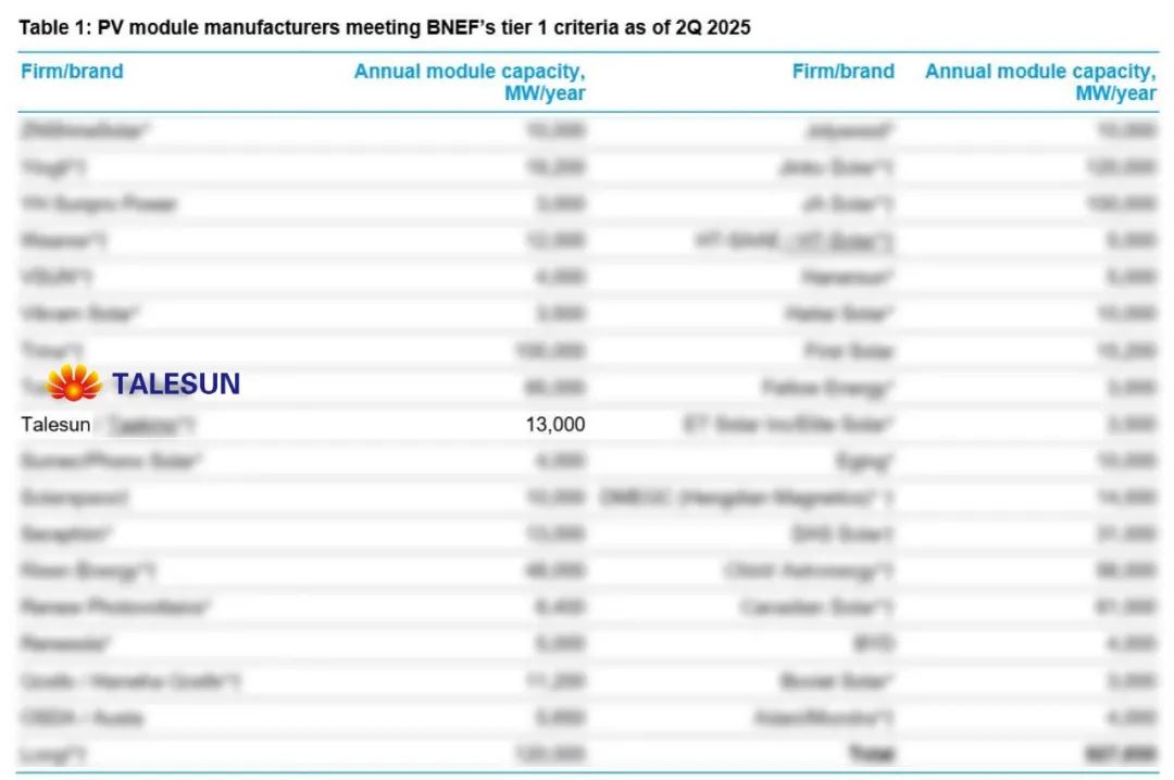 2025年6月2日,全球權(quán)威研究機(jī)構(gòu)彭博新能源財(cái)經(jīng)(BloombergNEF,簡(jiǎn)稱(chēng)BNEF)正式公布2025年第二季度Tier 1全球一級(jí)光伏組件制造商榜單。在光伏行業(yè)競(jìng)爭(zhēng)白熱化、新規(guī)嚴(yán)苛施壓的大背景下,騰暉光伏憑借卓越的技術(shù)實(shí)力、穩(wěn)健的財(cái)務(wù)表現(xiàn)以及前瞻性的全球化市場(chǎng)布局,再度榮登該榜單,成為新規(guī)實(shí)施后為數(shù)不多持續(xù)入圍的光伏企業(yè)之一。此次蟬聯(lián),不僅是對(duì)騰暉光伏行業(yè)領(lǐng)先地位的有力印證,更彰顯了其在高門(mén)檻、嚴(yán)標(biāo)準(zhǔn)下的非凡綜合競(jìng)爭(zhēng)力。