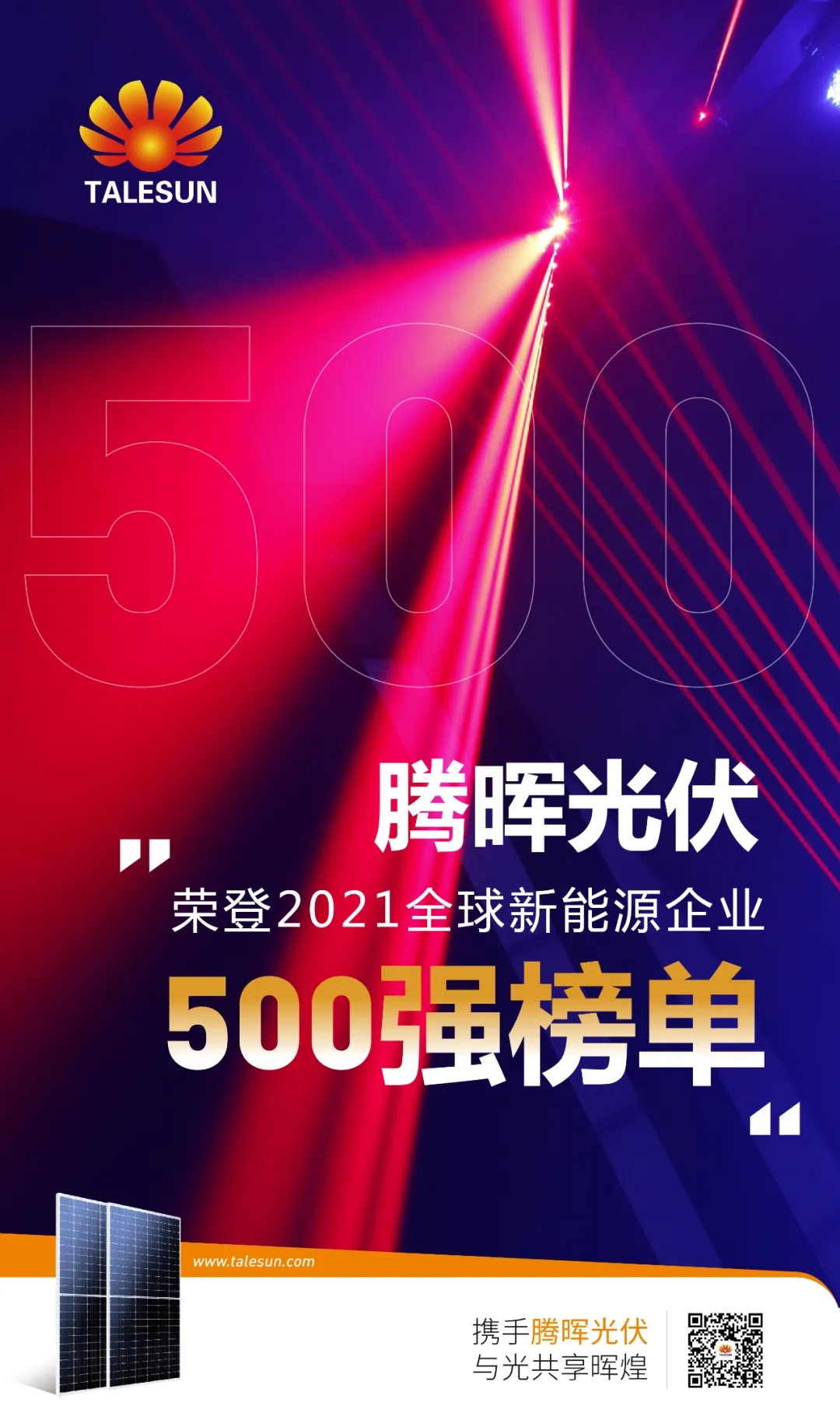 2021氫能產(chǎn)業(yè)發(fā)展論壇暨第十一屆全球新能源企業(yè)500強(qiáng)峰會(huì)于9月4日在山西太原舉辦,會(huì)上重磅揭榜“2021年全球新能源企業(yè)500強(qiáng)”。騰暉光伏已連續(xù)多年躋身全球新能源企業(yè)500強(qiáng)陣營(yíng),今年榮列本次榜單第272位。