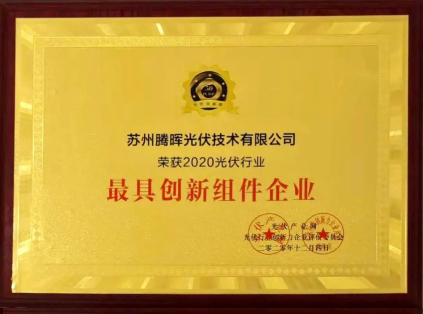 與此同時(shí),騰暉光伏在技術(shù)升級(jí)和團(tuán)隊(duì)建設(shè)等方面也取得了優(yōu)異的成績(jī)。截止目前,公司已完成近百項(xiàng)科研項(xiàng)目的開發(fā)工作,承擔(dān)國(guó)家級(jí)科技項(xiàng)目2項(xiàng),省級(jí)項(xiàng)目4項(xiàng),完成13項(xiàng)江蘇省新技術(shù)新產(chǎn)品鑒定,其中12項(xiàng)產(chǎn)品技術(shù)水平達(dá)到國(guó)內(nèi)領(lǐng)先水平,1項(xiàng)成果達(dá)到國(guó)際先進(jìn)水平,18項(xiàng)新產(chǎn)品被認(rèn)定為“江蘇省高新技術(shù)產(chǎn)品”, 并且先后多次榮獲蘇州市科技進(jìn)步獎(jiǎng),并獲2019年度江蘇省科學(xué)技術(shù)獎(jiǎng)三等獎(jiǎng),連續(xù)榮獲中國(guó)專利獎(jiǎng)第二十屆優(yōu)秀獎(jiǎng)及第二十一屆優(yōu)秀獎(jiǎng)等。